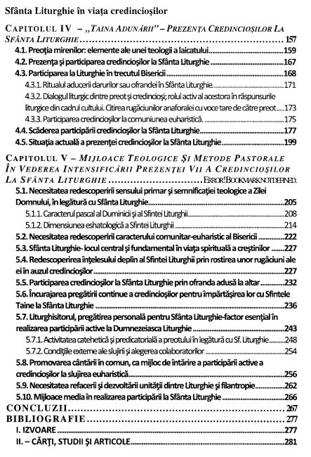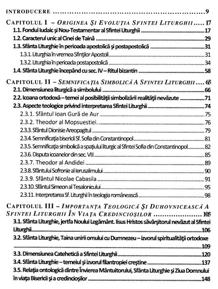 "Sfânta Liturghie este spațiul privilegiat al Parousiei liturgic-sacramentale a Domnului, teofania desăvârșită, cerul pe pământ, bucuria creației de Creator, transfigurarea întregii lumi prin om, arvuna vieții viitoare și icoana Împărăției cerurilor. Tot ceea ce se întâmplă în Sfânta Liturghie este accesibil omului doar prin credință, prin încorporare obiectiv sacramentală, iar apoi subiectiv actuală, etic-ascetică în viața Bisericii, urmărindu-se ajungerea la înțelegerea prin experiență a misterului sacramental. Lucrarea tainică a lui Dumnezeu în Sfânta Liturghie se descoperă treptat, și toate cele văzute, cuvintele rugăciunii liturgice și toată ambianța Bisericii, plină de Duhul Sfânt, conduc pe cel credincios spre descoperirea și trăirea ei."