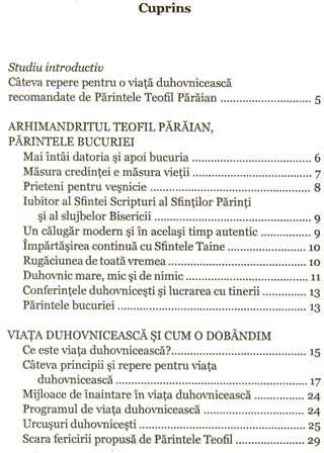 Aceasta este cea de-a cincea carte de interviuri cu Părintele Teofil Părăian, duhovnicul meu vreme de 17 ani, carte care vine să întărească încă o dată, dacă mai era nevoie, modul practic de înţelegere şi trăire a vieţii duhovniceşti de către Părintele Teofil. Cartea cuprinde 12 convorbiri realizate de mine cu Părintele Teofil de-a lungul anilor, atât în studioul Radioului Reîntregirea din Alba Iulia, cât şi în chilia părintelui – de la Mănăstirea Brâncoveanu de la Sâmbăta de Sus. Selectarea lor şi structurarea în cele patru părţi le-am realizat împreună cu Părintele Teofil la Spitalul Judeţean din Deva, cu o lună înainte de mutarea sa din această viaţă (septembrie 2009), atunci când am conceput, tot împreună, şi cartea „Întâlniri cu oameni iubitori de Dumnezeu” – devenită un omagiu în cinstea sfinţiei sale.