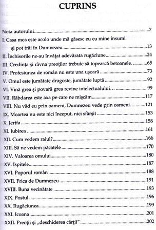 Au fost adunate in aceasta carte secvente din viata si „opera” parintelui Iustin Parvu. Inchis la Aiud, la Gherla, la Periprava, „inchis” in manastire, „ingropat în lume”, parintele Iustin n-a facut decat sa reafirme, de fiecare data, libertatea deplina pe care ti-o ofera credinta. Din pilda sa si a altora invatam sa fim romani si crestini. Cartea aduna dialoguri realizate in perioada 2005-2007.