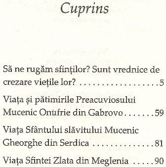 Citind vieţile sfinţilor – o comoară nepreţuită de spiritualitate – şi chemându‑i pe aceştia în rugăciunile noastre, vom înţelege, cu adevărat, ce este viaţa duhovnicească şi vom dori să nu ne abatem de la calea lor. În acest chip, ne vom apropia de Sfânta Biserică Ortodoxă, de credinţa ei, de înaltele ei idealuri, vom plăcea lui Dumnezeu şi vom ajunge la scopul final al existenţei noastre pământeşti – mântuirea.