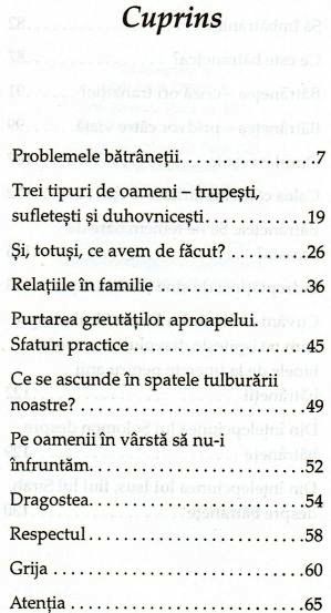 Cartea de față analizează diferitele aspecte ale raportării credinței ortodoxe la bătrânețe, cuprinzând, totodată, o serie de sfaturi practice în privința relațiilor complexe cu persoanele în vârstă, în duhul dragostei creștine – căci în Hristos problemele vârstnicilor și implicit ale bătrâneții își găsesc singurul răspuns autentic.