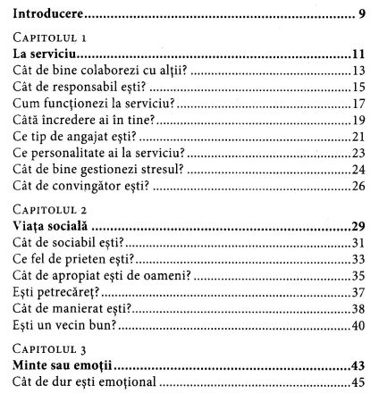 Această culegere de teste îţi va analiza inteligenţa emoţională dintr-o multitudine de perspective, te va ajuta să îţi cunoşti punctele tari şi punctele slabe şi va scoate la lumină aspecte ale personalităţii tale despre care este posibil să nu fi ştiut că există.