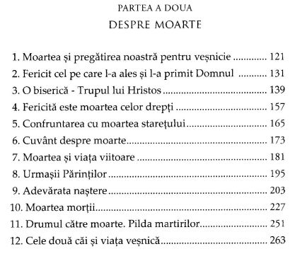 Trebuie sa se sfarseasca aceasta viata lipsita de har, in care stapaneste demonul, sa treaca lumea si sa vina harul lui Dumnezeu, ca sa vina ceea ce este vesnic, nestricacios. Adica prelungirea acestei vieti este din lumea aceasta, in timp ce sfarsitul este lucrul firesc si inalta la ceea ce este suprafiresc, intrucat face sa inceteze orice stricaciune si desertaciune, ne uneste cu Insusi Dumnezeu si ne introduce in camara Mirelui ceresc, unde nu exista nici durere, nici intristare, nici suspin. De aceea, cel mai bun lucru pe care il avem de facut este, mai intai, sa iubim acea ultima clipa a vietii noastre, pentru ca va fi clipa in care vom intalni lucrul dupa care am tanjit intreaga noastra viata, adica iubirea.