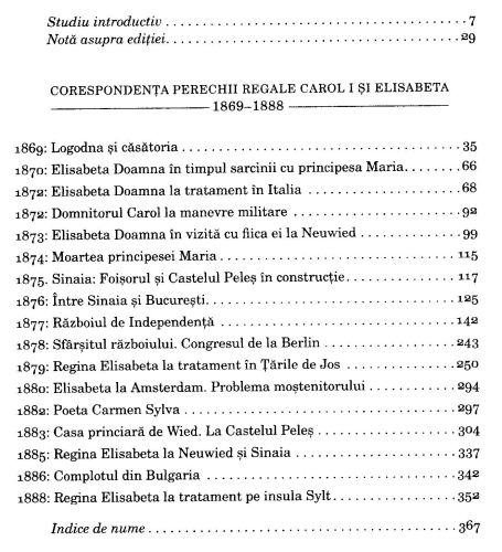 Ediţia de faţă, critică şi comentată, ne oferă, pentru prima dată în traducere din limba germană, schimbul de scrisori dintre regele independenţei României, Carol I, şi regina-poetă Elisabeta (Carmen Sylva). Dialogul epistolar oferă o privire amănunţită asupra căsniciei regale pe aproape întreaga perioadă a vieţii celor doi pe tronul României.