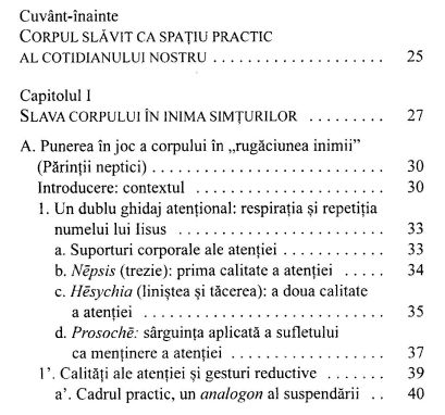 Centralitatea temelor întrupării, atenției și inimii în fenomenologia teoretică și practică a Nataliei Depraz rezonează deloc întâmplător cu centralitatea lor în teologia creștină în general și în expresia spirituală a Ortodoxiei răsăritene. Primită de Paștele anului 2004 în Biserica Ortodoxă și devenită astfel un fenomenolog creștin ortodox asumat, Natalie Depraz a prezentat în același an la Universitatea din Poitiers, în dosarul de abilitare, ciclul de studii despre corpul slăvit care face substanța volumului de față. Atentă cititoare a sfinților Părinți, dar și a gânditorilor teologici ortodocși contemporani (Ch. Yannaras, P. Evdokimov, V. Lossky), Natalie Depraz urmărește fenomenologic această experiență intensificată a corpului.