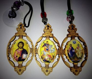 Medalioane auto cu icoana: Iisus Hristos, Sfantul Gheorghe, Sfanta Treime.